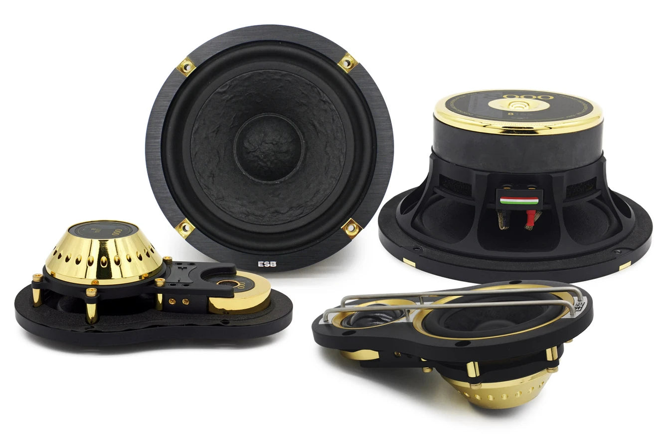 The 8000 series can be considered the direct heir of the legendary 7000 series, which scored many successes in the world of Italian car stereo and beyond. We renewed a range of speakers already in itself exceptional, with the aid of the best technologies now available. The goal was to renew a variety of speakers in itself exceptional, with the help of the latest technologies and the use of the best materials available today; always with an eye to the versatility of installation. Key to the development of this type of system in the car was so take full advantage of their exceptional musicality. In the 8000 series every detail was taken care of with the utmost care, from the choice of materials to the forms, from the construction and finishing of the baskets to the ventilation systems of magnets and coils. It has improved what was thought to be difficult to improve and we strongly believe that it has laid the foundation for another decade of success. Tweeter: The large diameter 28 mm voice coil is the right compromise between the lightness of the classic 25 mm coil and the great power management of 32 mm coils. Body made of 7000 aluminum alloy and brass, entirely worked by numerical control (CNC). This makes the structure very rigid and with practically zero tolerances to the benefit of consistency of performance and maximum linearity. Torcon® soft dome, an exclusive Polyphenylene Sulfide (PPS) with a high performance fiber that offers superb heat resistance, low weight and excellent self damping., get a free resonance frequency response until over audible frequency. O52 oversized high quality neodymium magnet. This "engine" guarantees a perfectly linear and constant magnetic flux over the entire working range of the tweeter, guaranteeing an extremely linear and neutral response both at low and high volume. Furthermore, a pure copper ring was added to reduce the harmonic distortions. Woofer: Basket made of 7000 aluminum alloy entirely worked by the numerical control (CNC). Cone in non-pressed paper, as well as the dust cover. The best compromise between damping and rigidity for an extremely natural sound without colorations or alterations. A water repellent treatment also makes it suitable for applications in harsh environments. A careful study supported by FEM analysis has allowed us to design the metal parts of the magnet in order to maximize the flow exactly around the moving coil, and make it linear throughout the entire excursion. Ventilation is ensured by a large opening at the bottom where its conformation reduces the noise of possible turbulence to inaudible levels. The large diameter voice coil uses an aluminum support to better disperse the temperature. Furthermore, the entire voice coil is exposed to the outside air through large slits in the basket (protected by a dust sponge).The speaker terminal, our exclusive design, accepts large section cables.