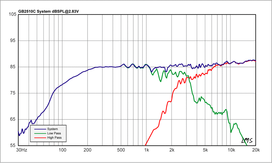 Specifically designed for use with the GB10 and GB25, the GB2510C provides high power handling and a seamless transition between woofer and tweeter. A precise L-pad, which keeps the crossover frequency, slope and Q constant over a 12 dB level adjustment range, is included for tweeter tuning.