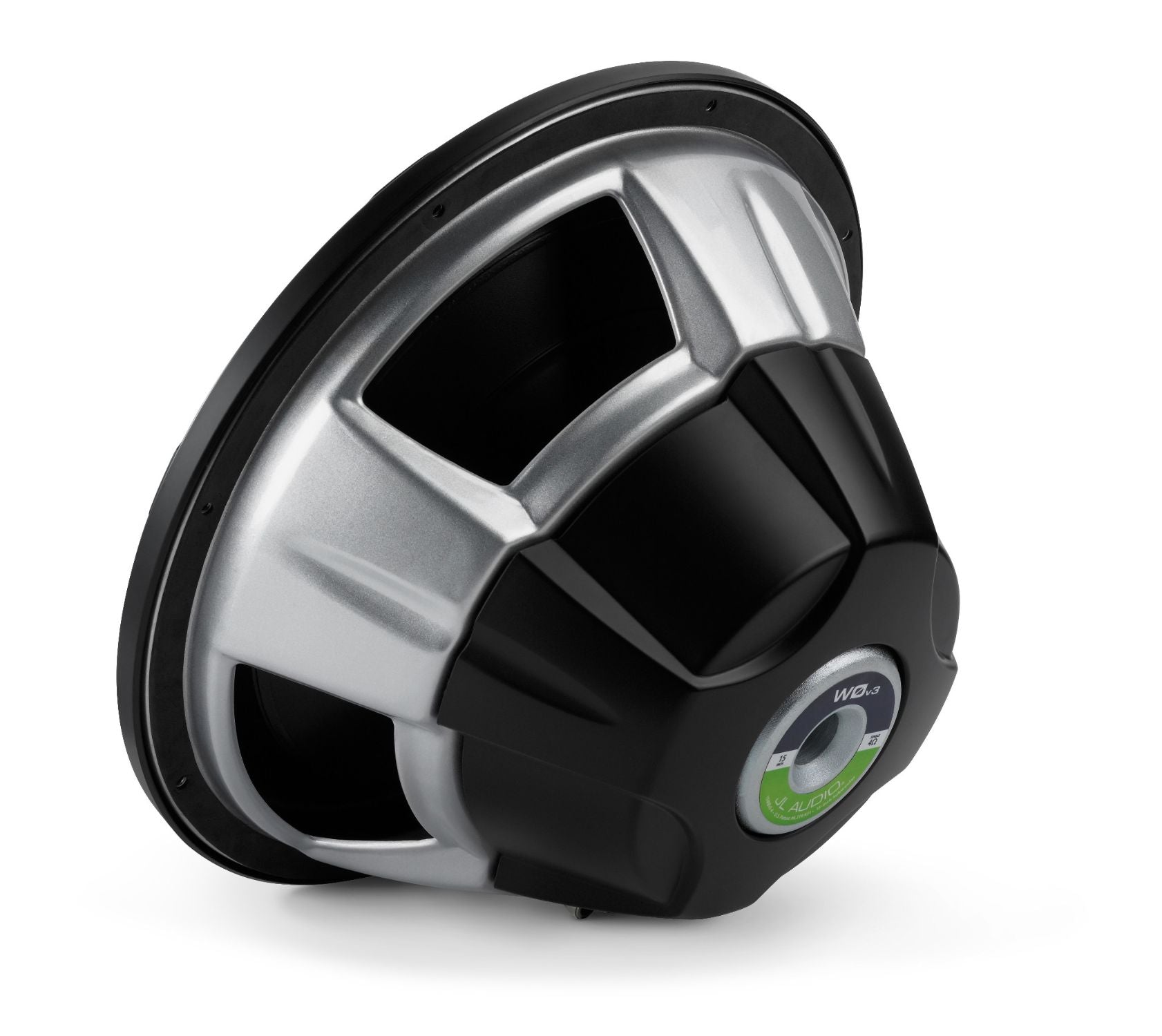 excursion. Striking, injection-molded, mica-filled polypropylene cone with printed JL Audio logo. Rubber sealing gasket and grille