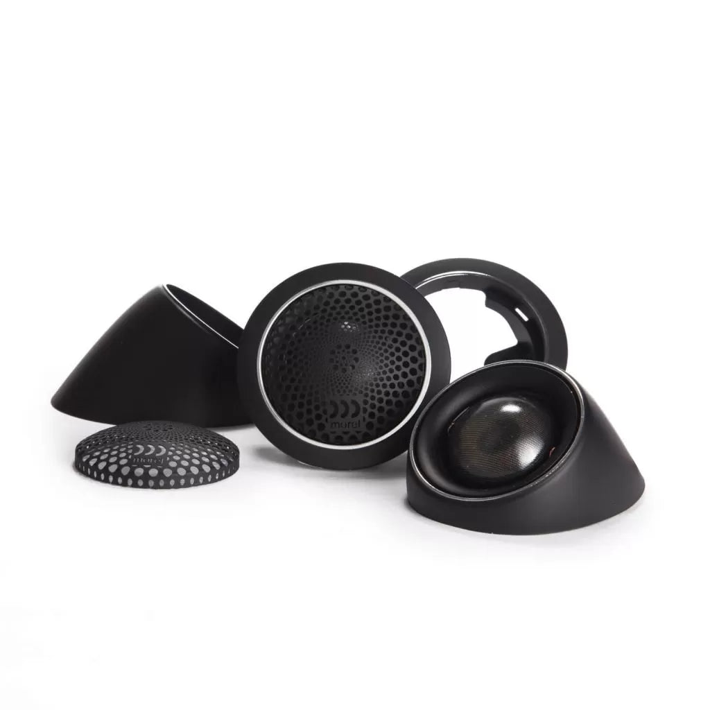The new generation Elate tweeter offers unrivalled high frequency performance in a compact design with incredible high power handling capabilities and very low distortion levels. Known as the MT-450, its design leverages Morel’s signature Acuflex coated 28mm soft dome, open cavity design, and dual neodymium motor technologies. While its size allows it to be fit into most factory locations, their chrome ringed surface and flush mount options provide an elegant look fitting for modern vehicles.