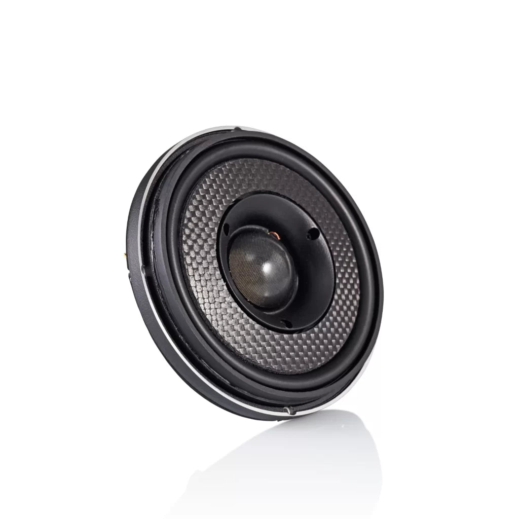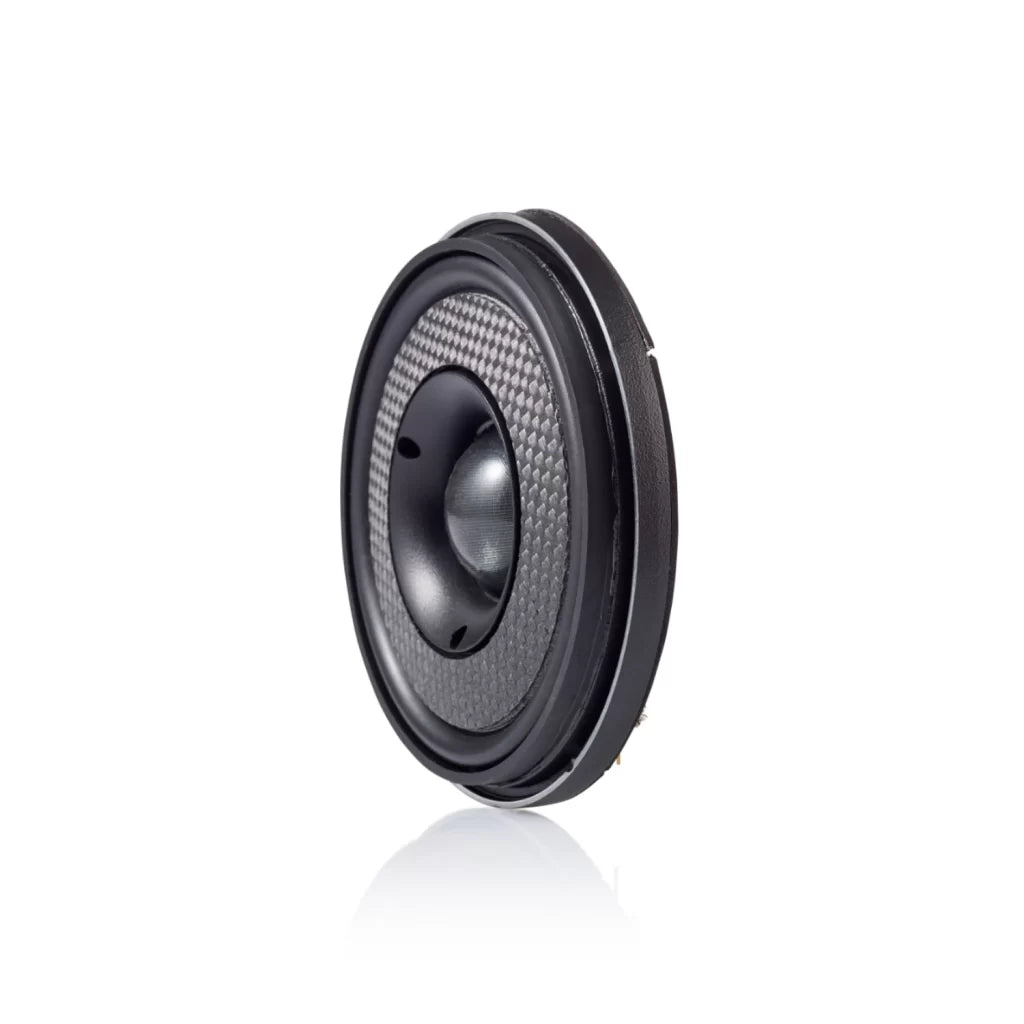 Morel’s cutting-edge design gives the Virtus Nano Carbon and Virtus Nano Integra Carbon systems an ultra-slim profile (Registered U.S Pat. No. 11,057,696) to fit where other speakers cannot. The 4 and 6.5-inch woofers measure only 0.7 inches (17mm) deep, making them the shallowest speakers in-car audio. It’s an engineering feat that uses an innovative suspension design, a highly powerful Neo magnet system, a 2.1” Hexatech aluminum voice coil, and a grand dome carbon fiber sandwich cone.