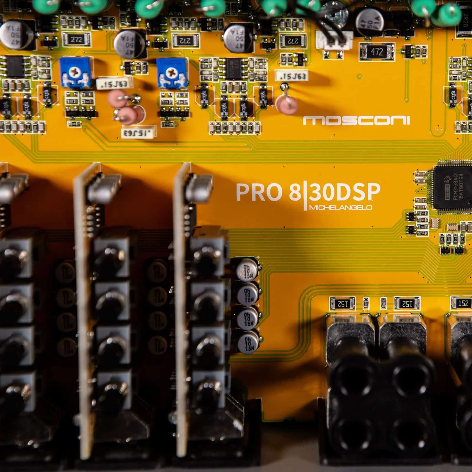 • The MOSCONI PRO 8|30 DSP sets standards in the field of multi-channel high-end DSP amplifiers. With its completely analog power section in the output range, the MOSCONI PRO 8|30 DSP sets standards in terms of music reproduction and thus trumps digital amplifiers in resolution and spatial representation.Uncompromising in design, the 8 channel amplifier MOSCONI PRO 8|30 DSP convinces with unconditional output power and an outstanding high-end sound experience. With the integrated 12 channel DSP (incl. 4 channel pre-out, processed, 8 V) almost all imaginable system configurations are possible. The power amplifier is High Level capable and Class SB compatible.